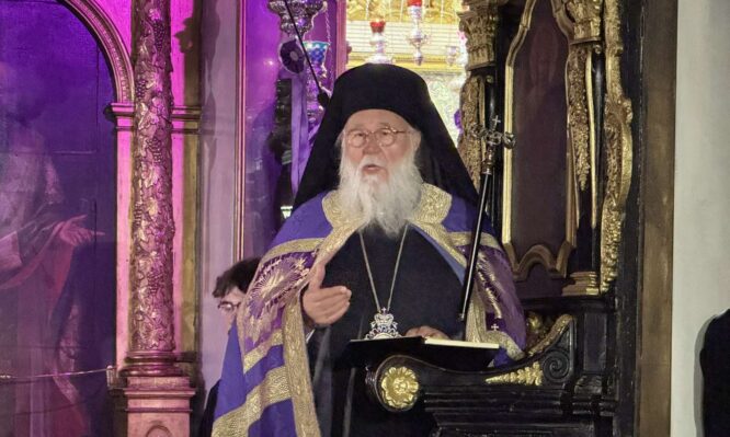 Το εσπέρας της Μεγάλης Τρίτης, 15 Απριλίου 2025, ο Σεβασμιώτατος Μητροπολίτης Κερκύρας, Παξών και Διαποντίων Νήσων, κ. Νεκτάριος, χοροστάτησε στον όρθρο της Αγίας και Μεγάλης Τετάρτης στον ιστορικό Ιερό Ναό της Υπεραγίας Θεοτόκου Φανερωμένης, “Παναγίας των Ξένων” στο ιστορικό κέντρο της πόλεως της Κέρκυρας.
