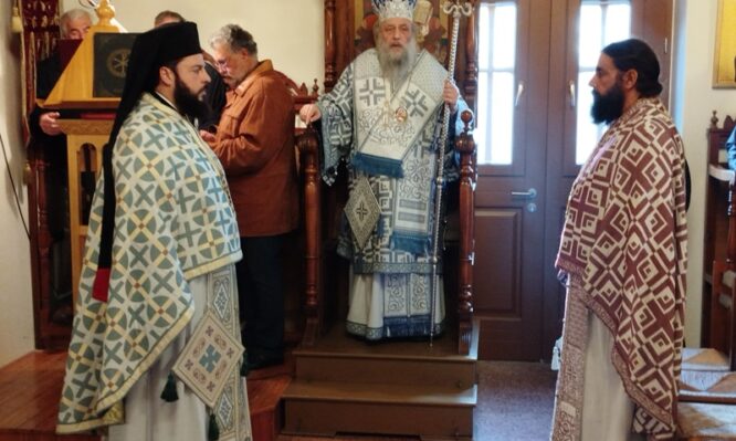 πλαισιούμενος από τον Πρωτοσυγκελλεύοντα της Ιεράς Μητροπόλεως, Αρχιμ. Δωρόθεο Βενετσανόπουλο, ο οποίος και κήρυξε τον θείο λόγο και τον οικείο Εφημέριο Πρωτοπρ. Θωμά Κυδωνιέα. Προ της Απολύσεως, ο Σεβασμιώτατος προέστη του 40νθημέρου Μνημοσύνου του αειμνήστου Νικήτα Τριανταφύλλου.