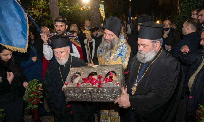 Κατόπιν ευγενικής προσκλήσεως του ιστορικού Συλλόγου Ρεθυμνίων Αττικής «ΤΟ ΑΡΚΑΔΙ», με την ευχή και την άδεια του Παναγιωτάτου Οικουμενικού Πατριάρχου κ.κ. ΒΑΡΘΟΛΟΜΑΙΟΥ και τη στοργική μέριμνα του Σεβασμιωτάτου Μητροπολίτου Λαοδικείας κ. Θεοδωρήτου, Διευθυντού του εν Αθήναις Γραφείου Εκπροσωπήσεως του Οικουμενικού Πατριαρχείου, μεταφέρθηκαν προσκυνηματικά από τον Σεβασμιώτατο Μητροπολίτη Ρεθύμνης και Αυλοποτάμου κ. Πρόδρομο, για πρώτη φορά […]