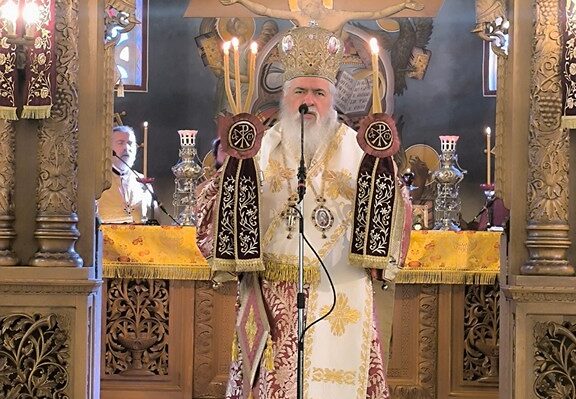Το πρωί της κυριώνυμης ημέρας της εορτής, Σάββατο 08 Μαρτίου, τελέσθηκε η Πανηγυρική Αρχιερατική Θεία Λειτουργία ιερουργούντος του Σεβασμιωτάτου Μητροπολίτου μας κ.κ. Βαρνάβα με εξαιρετική μεγαλοπρέπεια. Τη διακονία του λόγου ανέλαβε ο πανοσιολογιότατος αρχιμανδρίτης π. Ιάκωβος Κιζιρίδης, ο οποίος περιέγραψε καταρχάς το διά κολλύβων θαύμα του Μεγαλομάρτυρος Αγίου Θεοδώρου του Τήρωνος και στη συνέχεια αναφέρθηκε με μεστό θεολογικά τρόπο στη σχέση των πιστών με τον Θεό και τους συνανθρώπους, καθώς και στον πνευματικό αγώνα τους κατά τη διάρκεια της Μ. Τεσσαρακοστής, ασκώντας κατεξοχήν τις αρετές της συγχωρητικότητας, της νηστείας και της αγάπης. Στο τέλος της Θείας Λειτουργίας ο Ποιμενάρχης απηύθυνε στο πολυπληθές εκκλησίασμα παραινέσεις και πατρικές συμβουλές πολύτιμες για τον καθημερινό αγώνα των πιστών και εξέφρασε τις θερμές του ευχαριστίες προς όλους τους παρόντες, άρχοντες και λαό, τους πατέρες της ενορίας και τους συνεργάτες τους ευχόμενος σε όλες και όλους καλή δύναμη κατά τη Μ. Τεσσαρακοστή.
