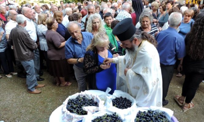 Μετά το πέρας της Θείας Λειτουργίας, ο Σεβασμιώτατος κατά το έθος, ευλόγησε τα σταφύλια, τα οποία και διενεμήθησαν, ως ευλογία, στους πιστούς.