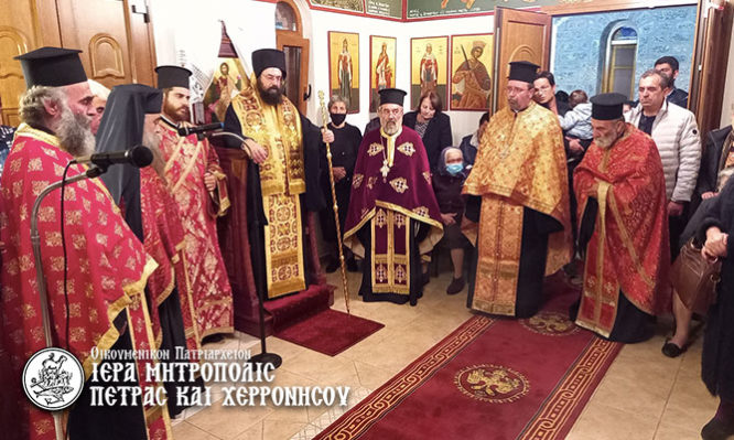 Το εσπέρας της Πέμπτης 24 Νοεμβρίου ο Μητροπολίτης Πέτρας και Χερρονήσου κ. Γεράσιμος χοροστάτησε στον Πανηγυρικό Εσπερινό που τελέσθηκε επί τη Εορτή της Αγίας Μεγαλομάρτυρος, της Πανσόφου και Νύμφης του Χριστού Αικατερινής, στον φερώνυμο Ιερό Ναό Επάνω Ελούντας.