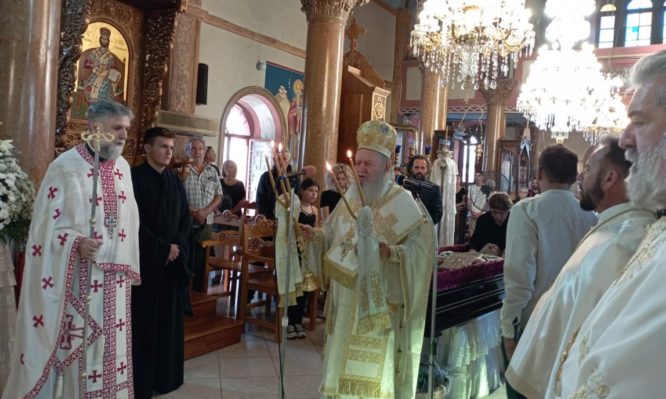 Την Παρασκευή 25 Αυγούστου 2023, το πρωί, στον Ενοριακό Ιερό Ναό Κοιμήσεως της Θεοτόκου Αφρατίου, εψάλη ο Όρθρος και στη συνέχεια ετελέσθη Αρχιερατική Θεία Λειτουργία, προεξάρχοντος του Σεβασμιωτάτου Μητροπολίτου Χαλκίδος κ. Χρυσοστόμου, με την συμμετοχή Κληρικών της Επαρχίας και πολλών ενοριτών του Αφρατίου.