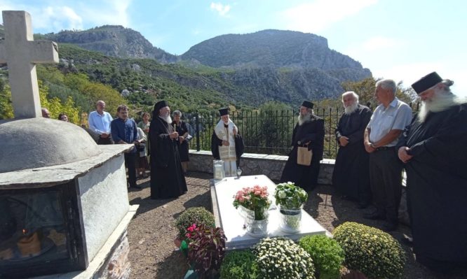 Κατόπιν, Κλήρος και Λαός ευχήθηκαν στην Γερόντισσα Μαριάμ και εν συνεχεία προσήλθαν στην Ι. Μονή, ο Σεβασμιώτατος Μητροπολίτης Φιλαδέλφειας Μελίτων, εκ του Οικουμενικού Πατριαρχείου και ο Ηγούμενος της Ι. Μονής Οσίου Δαυίδ, Αρχιμ. Γαβριήλ Εμμανουηλίδης και όλοι μετέβησαν στο Κοιμητήριο της Μονής, όπου τελέσθηκε νεκρώσιμο Τρισάγιο επί του τάφου, υπέρ αναπαύσεως της μακαριστής γερόντισσας Φεβρωνίας.