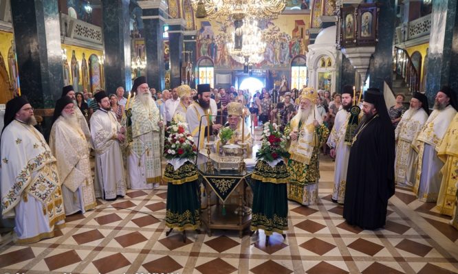 Καί εὔχομαι νά νικήσουμε σ᾽ αὐτόν τόν πνευματικό ἀγώνα πού ἀρχίζουμε ἀπό σήμερα, μέ τίς πρεσβεῖες τῶν ἑορταζομένων ἁγίων Μακκαβαίων, τῆς ἁγίας Σολομονῆς, τῆς μητέρας τους, τοῦ ἁγίου Ἐλεαζάρου καί τοῦ πολιούχου μας ἁγίου Ἀντωνίου, ἀλλά καί τίς εὐχές τῶν Σεβασμιωτάτων Ἁγίων Ἀρχιερέων, τοῦ Σεβασμιωτάτου Μητροπολίτου Βρυούλων κ. Παντελεήμονος, πολυσεβάστου ἱεράρχου τοῦ Οἰκουμενικοῦ μας Πατριαρχείου, ὁ ὁποῖος προεξῆρχε τῆς σημερινῆς θείας Λειτουργίας, ἀλλά καί τοῦ ἐπίσης σεβαστοῦ καί ἀγαπητοῦ Ἁγίου Τριπόλεως, κ. Θεοφυλάκτου, σεπτοῦ ἱεράρχου τοῦ Πατριαρχείου Ἀλεξανδρείας, πρός τούς ὁποίους ἐκφράζω καί πάλιν τήν εὐγνωμοσύνη καί τίς εὐχαριστίες μου, γιατί μέ τή σεπτή παρουσία τους λάμπρυναν τήν πανήγυρή μας.