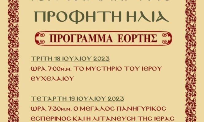 Πρόγραμμα πανηγύρεως Προφήτη Ηλία Ασωπίας