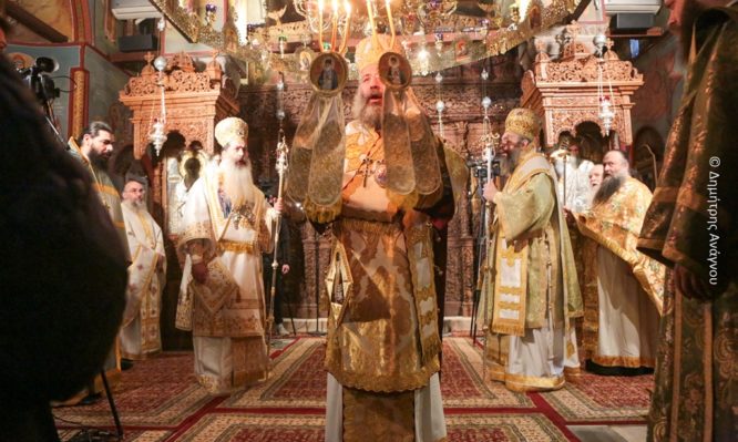 Στον Πανηγυρικό Όρθρο χοροστάτησε ο Σεβασμιώτατος Μητροπολίτης Ρεθύμνης και Αυλοποτάμου κ. Πρόδρομος, ο οποίος στην συνέχεια προηξήρχε στο Πολυαρχιερατικό Συλλείτουργο, το οποίο τελέσθηκε στο ιστορικό Καθολικό της Μονής συλλειτουργούντων των Σεβασμιωτάτων Μητροπολιτών Φλωρίνης, Πρεσπών και Εορδαίας κ. Ειρηναίου και του οικείου Ποιμενάρχου, Μητροπολίτου Φθιώτιδος κ. Συμεών.