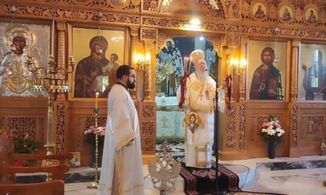 Την Τρίτη 4 Ιουλίου το πρωί, επί τη μνήμη ενός εκ των εν Ευβοία διαλαμψάντων Αγίων, του εν αγίοις πατρός ημών Μιχαήλ του Χωνιάτου, ο Μητροπολίτης χοροστάτησε στο Όρθρο και προέστη στη Θεία Λειτουργία, στον Ι. Ναό Αγ. Παρασκευής Πατητηρίου Αλοννήσου, με συλλειτουργούς τους Αρχιμ. Νικόδημο Ευσταθίου-Πρωτοσύγκελλο της Ι. Μητροπόλεως, Λουκά Σταμέλο και τον Διάκ. Σταύρο Καλαφάτη.