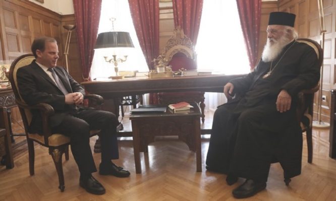 Ο υπουργός Υποδομών και Μεταφορών κ. Κώστας Καραμανλής επισκέφθηκε σήμερα το πρωί τον Αρχιεπίσκοπο Αθηνών και πάσης Ελλάδος κ. Ιερώνυμο.