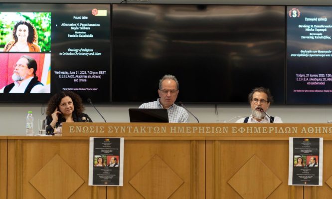 Πραγματοποιήθηκε την Τετάρτη 21 Ιουνίου η στρογγυλή τράπεζα με θέμα «Θεολογία των Θρησκειών στον Ορθόδοξο Χριστιανισμό και το Ισλάμ» με τη συμμετοχή του Θανάση Ν. Παπαθανασίου, Αρχισυντάκτη του περιοδικού «Σύναξη», Αναπληρωτή Καθηγητή της Ανώτατης Εκκλησιαστικής Ακαδημίας Αθηνών και της Nayla Tabbara, Προέδρου του Ιδρύματος Adyan, Καθηγήτριας Ισλαμικών Σπουδών στο Πανεπιστήμιο Saint Joseph της Βηρυτού (Λίβανος), και με συντονισμό του Παντελή Καλαϊτζίδη, Διευθυντή της Ακαδημίας Θεολογικών Σπουδών Βόλου. Η εκδήλωση πραγματοποιήθηκε στην Αθήνα, στα γραφεία της Ε.Σ.Η.Ε.Α. και ήταν η τελευταία της σειράς «Καιρός του ποιήσαι» για φέτος.