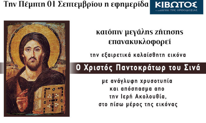 Την Πέμπτη, 01 Σεπτεμβρίου, κυκλοφορεί το νέο φύλλο της Εφημερίδας «Κιβωτός της Ορθοδοξίας»