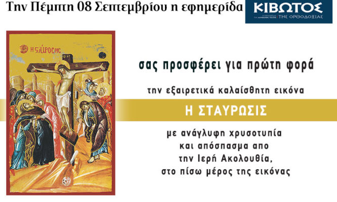 Την Πέμπτη, 08 Σεπτεμβρίου, κυκλοφορεί το νέο φύλλο της Εφημερίδας «Κιβωτός της Ορθοδοξίας»