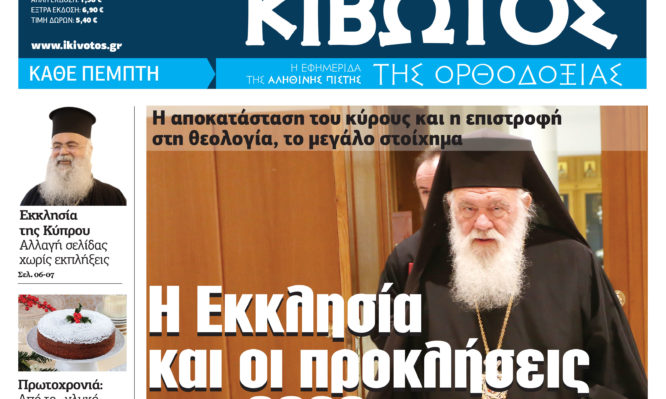 Την Πέμπτη 29 Δεκεμβρίου, κυκλοφορεί το νέο φύλλο της Εφημερίδας «Κιβωτός της Ορθοδοξίας»