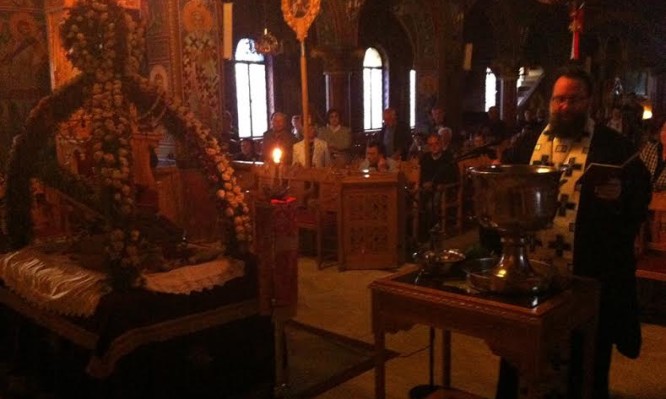 Η ακολουθία των Χαιρετισμών εις τον Πανάγιο Τάφο τελέσθηκε το βράδυ της Κυριακής των Μυροφόρων εις τον Ναό της Αγίας Μαρίνης Ηλιουπόλεως.