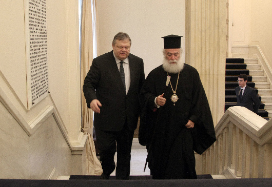 Για εκκλησιαστικά ζητήματα όπως η πρόσφατη σύναξη των προκαθημένων των Ορθοδόξων Εκκλησιών καθώς και για θέματα μεσογειακής και αφρικάνικης πολίτικης συζήτησαν ο Πατριάρχης Αλεξανδρείας κ. Θεόδωρος και ο αντιπρόεδρος της Κυβέρνησης και υπουργός Εξωτερικών κ. Ευάγγελος Βενιζέλος.