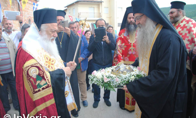 Την Κάρα της Αγίας Παρασκευής μετέφερε ο Αρχιμ, Φιλόθεος, από τη Μονή Κουτλουμουσίου, και την υποδέχτηκε ο Μητροπολίτης Βεροίας, Ναούσης και Καμπανίας κ. Παντελεήμων και πλήθος κλήρου και λαού. Στη συνέχεια ο κ. Παντελεήμων χοροστάτησε στον Εσπερινό και κήρυξε τον θείο λόγο.