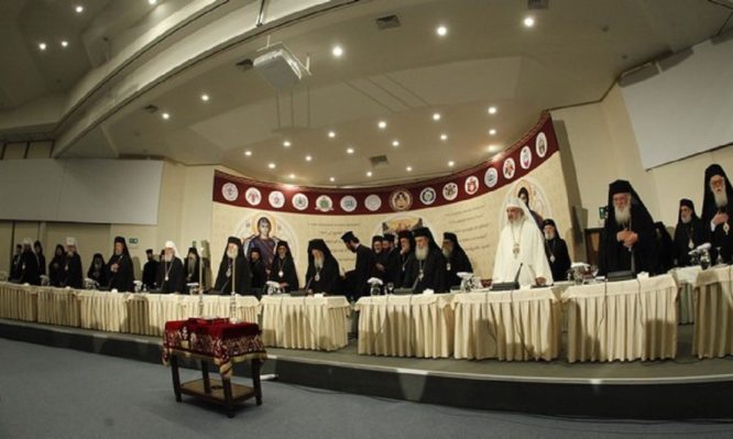 2016 Αγία και Μεγάλη Σύνοδος – Κρήτη: Εις το ευαίσθητον κείμενον το οποίο αφορούσε τις σχέσεις της Ορθοδόξου Εκκλησίας με τον λοιπόν Χριστιανικόν Κόσμον η Αντιπροσωπεία της Εκκλησίας της Ελλάδος στοιχούσα το πνεύμα της Ιεραρχίας, προέτεινε εις την παράγραφον 6η αντί του: «Η Ορθόδοξος Εκκλησία αναγνωρίζει την ιστορικήν ύπαρξιν άλλων Χριστιανικών Εκκλησιών και Ομολογιών», το «Η Ορθόδοξος Εκκλησία αποδέχεται την ιστορικήν ονομασίαν άλλων ετεροδόξων Χριστιανικών Εκκλησιών και Ομολογιών», με αποτέλεσμα να υπάρξει πλήρης αποδοχή της προτάσεως και να επέλθει ομοφωνία. (φωτογραφία αρχείου: Χρήστος Μπόνης)