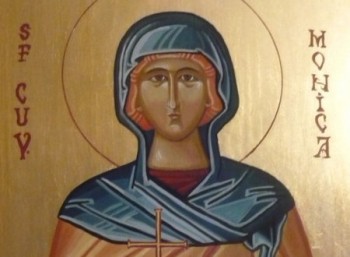 Η Αγία Μόνικα, μητέρα του ιερού Αυγουστίνου (βλέπε 15 Ιουνίου), γεννήθηκε το 332 μ.Χ. στην πόλη Ταγάστη της βόρειας Αφρικής από γονείς Χριστιανούς, ευσεβείς και φιλόθεους. Νυμφεύθηκε τον εθνικό διοικητή Πατρίκιο, ο οποίος είχε εντελώς διαφορετικό χαρακτήρα από την Αγία. Αισθανόταν ενοχλημένος από την αδιάλειπτη προσευχή της, έβρισκε την φιλανθρωπική της διάθεση υπερβολική, αδυνατούσε να κατανοήσει την διάθεσή της να επισκέπτεται τους πάσχοντες και τους ασθενείς. Η Αγία Μόνικα αντιμετώπιζε όλη αυτήν την κατάσταση με προσευχή και αγωνιζόταν να αναθρέψει τους δύο υιούς της και τη θυγατέρα της με παιδεία και νουθεσία Κυρίου, παρά το γεγονός ότι ο σύζυγός της δεν συμφωνούσε στην βάπτιση των παιδιών του. Η Αγία δεν αντιστεκόταν στη βίαιη ιδιοσυγκρασία και τις ηθικές παρεκτροπές του Πατρικίου. Γνώριζε ότι αυτά που είναι αδύνατα για τους ανθρώπους, είναι δυνατά από τον Θεό. Γι’ αυτό ήταν πολύ διακριτική και υπομονετική. Η προσευχή της Αγίας εισακούσθηκε και ο Θεός φώτισε την καρδιά του Πατρικίου και μετά από δεκαέξι χρόνια βαπτίσθηκε Χριστιανός, για να κοιμηθεί με ειρήνη το 371 μ.Χ. Λίγα χρόνια αργότερα, την νύχτα του Πάσχα στις 25 Απριλίου του 387 μ.Χ., ο Αυγουστίνος βαπτίσθηκε από τον Άγιο Αμβρόσιο, Επίσκοπο Μεδιολάνων (βλέπε 7 Δεκεμβρίου) και η Αγία ήταν παρούσα στην βάπτιση του υιού της. Γράφει για την στάση της μητέρας του Μόνικας ο ιερός Αυγουστίνος στις «Εξομολογήσεις» του: «Η μητέρα μου έχυνε για εμένα περισσότερα δάκρυα από όσα χύνουν οι μητέρες επάνω στα νεκρά τέκνα τους. Με την θέρμη της πίστης, η οποία της χάριζε η μεγάλη της ευσέβεια, με έβλεπε ηθικώς νεκρό. Και Συ Κύριε εισάκουσες την δέησή της και δεν περιφρόνησες τα δάκρυά της, με τα οποία πότισε το έδαφος, παντού όπου προσευχόταν. Οι πόνοι της να με αναγεννήσει διά του Πνεύματος ήταν σκληρότεροι από αυτούς τους οποίου υπέφερε να με γεννήσει διά της σαρκός».