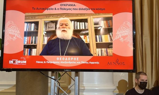 Ηχηρή υπήρξε και η παρέμβαση του Πάπα και Πατριάρχη Αλεξανδρείας κ. Θεοδώρου στην Εσπερίδα Στρογγυλής Τραπέζης, με θέμα: “ΟΥΚΡΑΝΙΑ – Το αυτοκέφαλο κι ο πόλεμος που άλλαξαν τον κόσμο”, η οποία διοργανώθηκε από τον Οργανισμό Ανάδειξης Ελληνικού και Ορθόδοξου Πολιτισμού «Αέναος» μέσω του «Orthodoxia inForum».