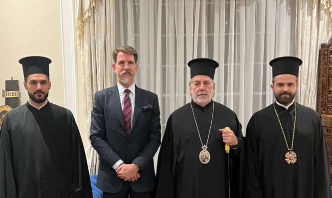 Τον Σεβασμιώτατο Αρχιεπίσκοπο Θυατείρων και Μεγάλης Βρεταννίας κ. Νικήτα επισκέφθηκε ο Υψηλότατος Πρίγκηπας κ. Παύλος, τέως Διάδοχος Πρίγκιπας της Ελλάδος και Πρίγκιπας της Δανίας, την Δευτέρα, 18 Δεκεμβρίου 2023.