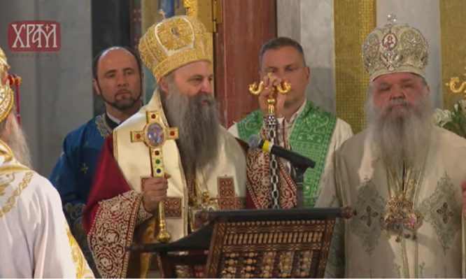 Μια ιστορική στιγμή έλαβε χώρα σήμερα, Πέμπτη 19 Μάϊου 2022, στον ασφυκτικά γεμάτο από πιστούς Καθεδρικό Ναό του Αγίου Σάββα, στο Βελιγράδι. Μετά από σχεδόν μισό αιώνα, 55 ολόκληρα χρόνια για την ακρίβεια, γράφτηκε μια νέα σελίδα. Ο Πατριάρχης Σερβίας κ. Πορφύριος συλλειτούργησε με τον τον Αρχιεπίσκοπο Αχρίδος κ. Στέφανο, σε μια κίνηση αποκατάστασης της ευχαριστιακής κοινωνίας μεταξύ των δύο Εκκλησιών, καθώς από το 1967, η Εκκλησία της Σερβίας είχε κηρύξει σχισματική την Εκκλησία των Σκοπίων.