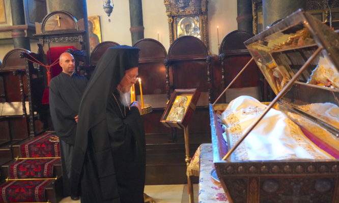 O Οικουμενικός Πατριάρχης κ.κ. Βαρθολομαίος, το απόγευμα της Τετάρτης, 10 Ιουλίου 2024, συμπροσευχήθηκε στον Μ. Εσπερινό της εορτής του θαύματος της Αγίας Μεγαλομάρτυρος Ευφημίας, ο οποίος τελέστηκε χοροστατούντος του Σεβ. Μητροπολίτου Ικονίου κ. Θεολήπτου, στον Πάνσεπτο Πατριαρχικό Ναό.