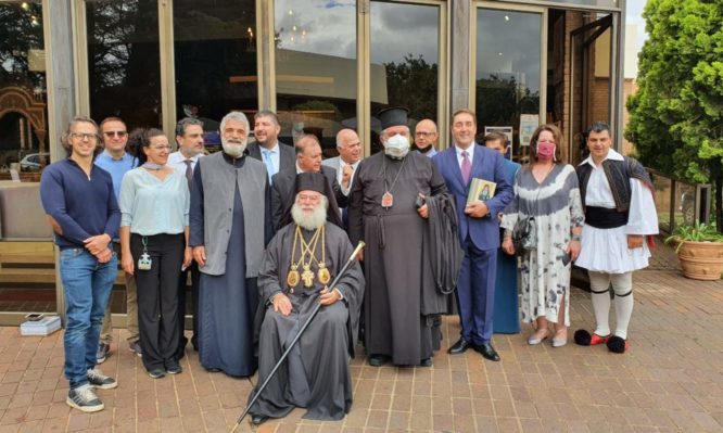 Κατόπιν, έλαβε τον λόγο ο κ. Σταύρος Νικολάου, ο οποίος αναφέρθηκε στην πολιτική του Πατριάρχου Θεοδώρου, για ελεύθερη πρόσβαση στην υγεία και στο πλαίσιο αυτό σχολίασε την παρασημοφόρηση του Νοτιοαφρικανού Προέδρου κ. Σύριλ Ραμαπόζα, ως εκ των ων ουκ άνευ λόγω της συμβολής του στην αντιμετώπιση του ιού Covid-19 και την αναγνώριση της θετικής του επιρροής του στην Αφρικανική Ένωση. Αναφέρθηκε δε στις συναντήσεις του Μακαριωτάτου με πολιτικούς παράγοντες της Νοτίου Αφρικής στην περιοχή του Γιοχάνεσμπουργκ και Πρετορίας.