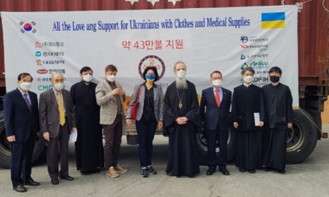 Η Ορθόδοξη Μητρόπολη Κορέας από την αρχή του πολέμου στην Ουκρανία συνεργάστηκε με την φιλανθρωπική Οργάνωση Korea Love Sharing Community για την συγκέντρωση της ανθρωπιστικής βοήθειας και την αποστολή της με πλοίο από το λιμάνι του Μπουσάν μέσω Ρουμανίας στην Ουκρανία.