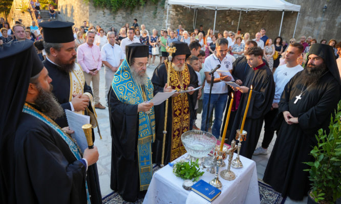 Μέσα σε κλίμα συγκίνησης και άφατης χαράς την Πέμπτη 1η Αυγούστου 2024, στις 8 το απόγευμα, τελέστηκε η Ακολουθία του Αγιασμού και μετέπειτα η Α΄ Παράκληση προς την Παντάνασσα στον αναπαλαιωθέντα ιστορικό και μεγαλοπρεπή Ναό του Ιερού Προσκυνήματος Παναγίας στη Μεγάλη Παναγία Χαλκιδικής της Ιεράς Μητροπόλεως Ιερισσού, Αγίου Όρους και Αρδαμερίου.