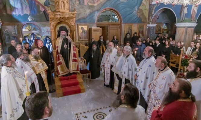 Στον Εσπερινό και τον Όρθρο της Ιεράς Αγρυπνίας χοροστάτησε ο Σεβασμιώτατος Ποιμενάρχης μας, Μητροπολίτης Ρεθύμνης και Αυλοποτάμου κ. Πρόδρομος, ο οποίος στη συνέχεια τέλεσε την Αρχιερατική Θεία Λειτουργία, συλλειτουργούντων των Πανοσιολ. Καθηγουμένων και Ιερομονάχων της Ιεράς Μητροπόλεώς μας.