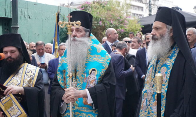 Ο Μητροπολίτης Πειραιώς κ.Σεραφείμ χοροστάτησε στην πανηγυρική Δοξολογία που τελέστηκε για την Εθνική μας εορτή, στον Καθεδρικό Ιερό Ναό Αγίας Τριάδος Πειραιώς, παρουσία των πολιτικών και στρατιωτικών αρχών της πόλεως.