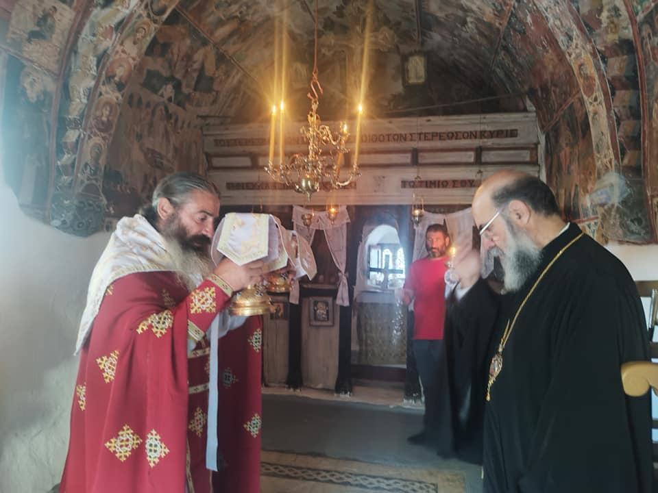 Ὁ Σεβ. Μητροπολίτης Σύμης κ. Χρυσόστομος εχοροστατησε τοῦ Ὄρθρου καί τῆς Θείας Λειτουργίας εἰς τόν πανηγυρίζοντα Ἱ. Ναόν Κοιμήσεως Θεοτόκου (Παναΐδι πλησίον Σταυροῦ τοῦ Πολέμου) Ζυμοσυνῶν Σύμης