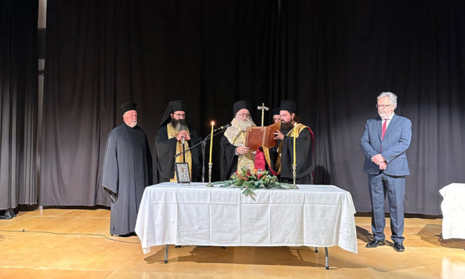 Κατά τη διάρκεια της Ακολουθίας τέθηκε προς προσκύνηση τεμάχιο των ιερών λειψάνων του Αγίου Νεκταρίου, το οποίο κόμισε από... -