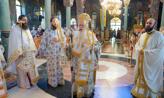 Κατά τη διάρκεια της θείας Λειτουργίας τέθηκε σε προσκύνηση φιαλίδιο με αίμα του Οσίου Πορφυρίου, το οποίο φυλάσσεται στη... -