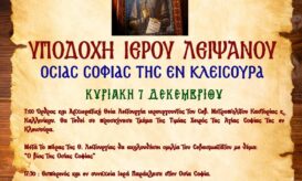 Τμήμα της τιμίας χείρας της Οσίας Σοφίας της εν Κλεισούρα θα υποδεχθεί αυτή την Κυριακή, 7 Δεκεμβρίου, ο Ιερός...