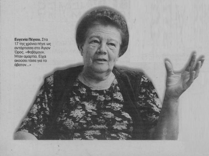 «Φοβόμουν πολύ. Είχα ακούσει ότι απαγορεύονταν να μπούνε γυναίκες στο Άγιον Όρος. Η διμοιρία μου έφτασε στη Μονή Ιβήρων. Οι καλόγεροι δεν άνοιγαν την πόρτα. Εγώ δεν πυροβολούσα. Δεν κυκλοφορούσε κανείς.