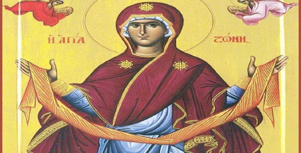 Τότε ο ίδιος ζήτησε από την Παναγία να του δώσει κάτι για ευλογία, και Εκείνη του έδωσε τη ζώνη της.
