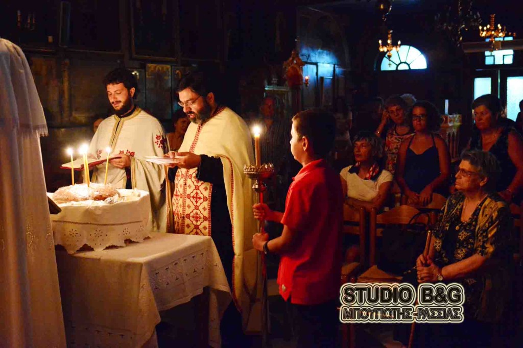 Μετά από τρείς ημέρες άνοιξαν το Μνημείο για χάρη του Αποστόλου Θωμά ο οποίος απουσίαζε κατά Θεία παραχώρηση από τον ενταφιασμό Της Θεοτόκου, και με έκπληξη και χαρά διαπίστωσαν ότι το Σώμα που γέννησε τον Σωτήρα είχε μεταστεί στους Ουρανούς. Στον ενοριακό ναό της Αγίας Τριάδος στην Πρόνοια Ναυπλίου έγινε το βράδυ της 11 προς 12 Αυγούστου νυχτερινή θεία λειτουργία προς τιμή της Θεοτόκου Τ