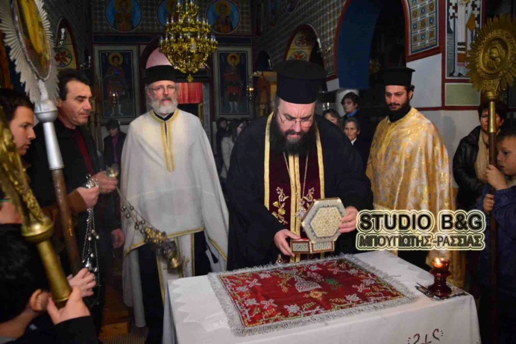 Με ιδιαίτερη λαμπρότητα ο ενοριακός ναός του Αγίου Γεωργίου στα Πυργιώτικα Ναυπλίου υποδέχθηκε τεμάχιο του ιερού λειψάνου του Αγίου Ιωάννου του Χρυσοστόμου και του Αγίου Βασιλείου του Μεγάλου.