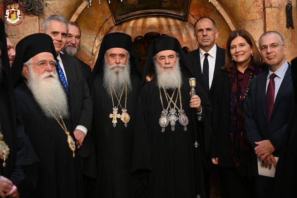 Στην Αίθουσα του Θρόνου, αμέσως μετά τη Χειροτονία, ο Υπουργός Εξωτερικών της Ελλάδος κ. Γεώργιος Γεραπετρίτης, εξέφρασε την βαθειά συγκίνηση και τον σεβασμό της Ελληνικής Κυβερνήσεως προς το Πατριαρχείον Ιεροσολύμων, επισημαίνων το πολυδιάστατο πνευματικό, εθνικό και πολιτιστικό έργο του, ως και την ιδιαίτερη χαρά της συμμετοχής του στις λατρευτικές αυτές εκδηλώσεις.