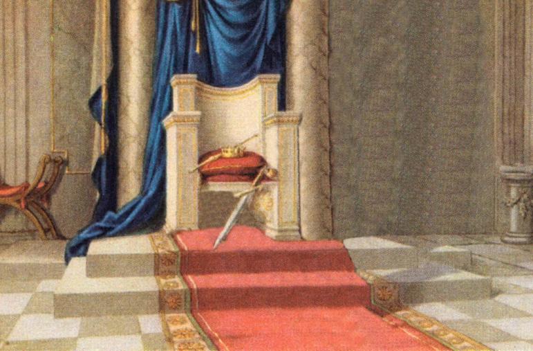Το σχέδιο ήταν απλό. «Αν ο άρχοντας βγει και μιλήσει καθαρά και ωραία κανείς δεν θα έχει πια αμφιβολίες». Οι αυλικοί ανέλαβαν να του γράψουν τα λόγια. Έφεραν και ζωγράφους. Κάθισαν από την μια τον άρχοντα, έβαλαν και τον αγγελιοφόρο με το σπαθί από την άλλη, και τους έφτιαξαν πορτρέτα.
