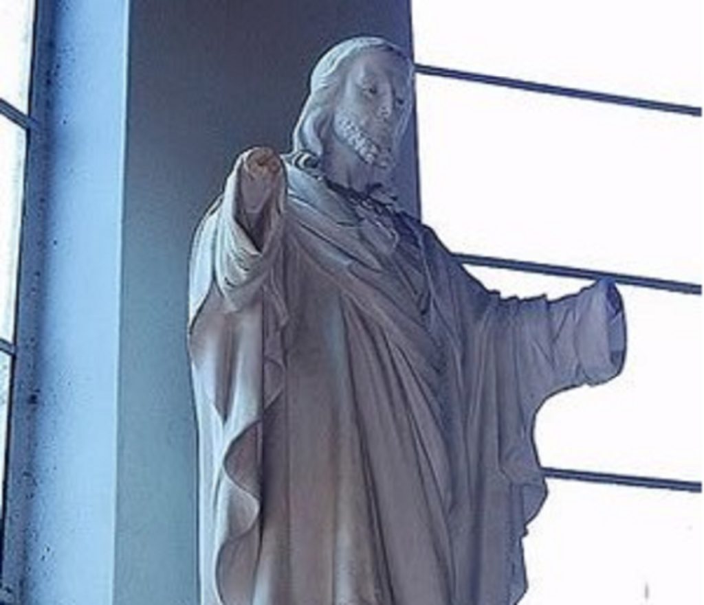 Στη διάρκεια του Β’ Παγκοσμίου Πολέμου μια εκκλησία στο Στρασβούργο της Γαλλίας καταστράφηκε ολοσχερώςαπό τους βομβαρδισμούς. Μετά τη λήξη της βομβιστικής επίθεσης οι κληρικοί και ενορίτες θρηνώντας πάνω στα χαλάσματα, αισθάνθηκαν πραγματική αγαλλίαση και παρηγοριά όταν αντίκρισαν το άγαλμα του Χριστού, που δέσποζε στην αυλή, έργο σπουδαίου καλλιτέχνη, να παραμένει όρθιο αλλά με ακρωτηριασμένα τα απλωμένα χέρια του,που τα ένιωθαν να τους αγκαλιάζουν και να τους προστατεύουν καθημερινά.