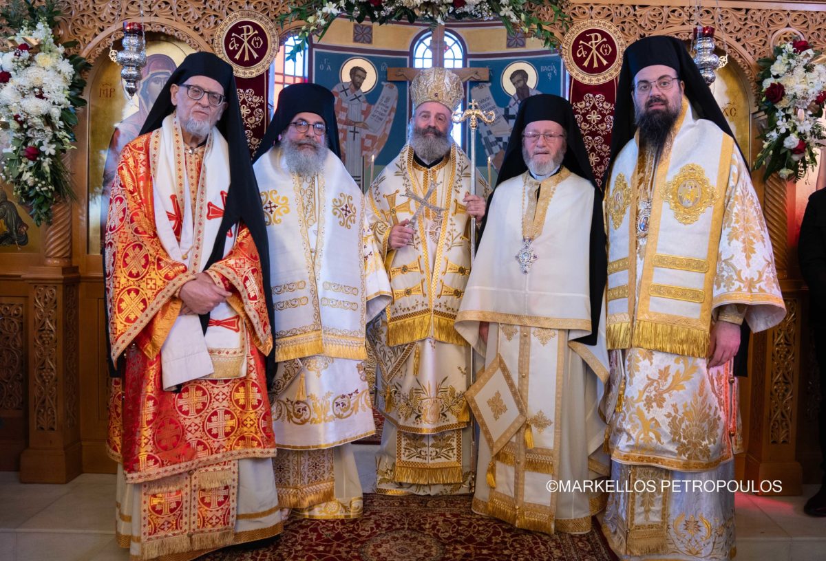 Μετά την Ακολουθία του Όρθρου, ο Σεβασμιώτατος, πλαισιούμενος από τους Θεοφιλεστάτους Επισκόπους Χώρας κ. Ευμένιο, Μελβούρνης κ. Κυριακό και Νικοπόλεως κ. Θεμιστοκλή, εκ του Πατριαρχείου Αλεξανδρείας, τέλεσε την Ακολουθία των Εγκαινίων του Ιερού Ναού και, στη συνέχεια, προεξήρχε της πρώτης επί τη καθαγιασμένη Αγία Τράπεζα Θείας Λειτουργίας. Κατά τη διάρκεια αυτής, απένειμε το οφφίκιο του Αρχιμανδρίτου τον Πρωτοπρεσβύτερο π. Βασίλειο Κουρτέση, Ιερατικώς Προϊστάμενο της Ενορίας Αγίων Κυρίλλου και Μεθοδίου Preston, μετονομάσας αυτόν Ιερόθεο, προς τιμήν του μακαριστού π. Ιεροθέου Κουρτέση, ενός αξίου και χαρισματικού κληρικού με μεγάλη προσφορά στην Ορθόδοξο εν Αυστραλία Εκκλησία.