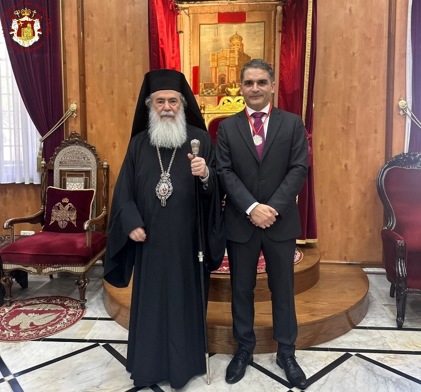 Τήν Τρίτην, 25ην Ἰουνίου / 8ην Ἰουλίου 2025, ὁ Μακαριώτατος Πατήρ ἡμῶν καί Πατριάρχης Ἱεροσολύμων κ.κ. Θεόφιλος ἐδέχθη τόν ἐπί κεφαλῆς τοῦ Γραφείου Ἐκπροσωπήσεως τῆς Κυπριακῆς Δημοκρατίας ἐν Ραμάλλᾳ κ. Δημήτριον Ἄσσον μετά τῆς συζύγου αὐτοῦ ἐπί τῷ γεγονότι τῆς προσεχοῦς ἀφυπηρετήσεως αὐτοῦ.
