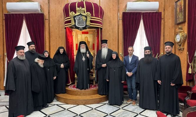 Τὴν Πέμπτην, 7ην /20ήν Νοεμβρίου 2025, ὁ Μακαριώτατος Πατήρ ἡμῶν καί Πατριάρχης Ἱεροσολύμων κ.κ. Θεόφιλος ἐδέχθη τὸν Σεβασμιώτατον Μητροπολίτην Νέας Κρήνης καὶ Καλαμαριᾶς κ. Ἰουστῖνον μετὰ τῆς καθηγουμένης τῆς γυναικείας Ἱερᾶς Μονῆς Εὐαγγελισμοῦ Ὁρμύλιας ὁσιολογιωτάτης  μοναχῆς Νικοδήμης. Τὸν Σεβασμιώτατον ηὐχαρίστησεν ὁ Μακαριώτατος διὰ τὴν παρεχομένην ὑπὸ τῆς Μητροπόλεως Αὐτοῦ φιλοξενίαν τῶν νέων τοῦ ποιμνίου τοῦ Πατριαρχείου εἰς […]