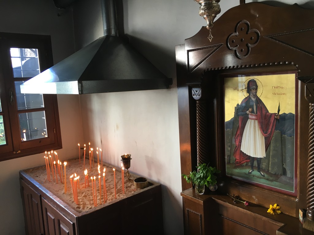 Την επόμενη ημέρα ξυπνούσαν πολύ νωρίς το πρωί, για να προλάβουν να μαζέψουν τα πράγματα πριν έλθει ο ιερέας να τελέσει το μυστήριο της Θείας Ευχαριστίας. Εκείνες τις μέρες ο δρόμος έξω από το σπίτι άστραφτε από καθαριότητα και η οικεία ήταν στολισμένη με δάφνες στην μεγάλη ξύλινη πόρτα και στα παράθυρα με τα χοντρά σιδερένια κάγκελα, ενώ σημαίες και λάβαρα στόλιζαν τις κολώνες κατά μήκος του δρόμου. Η εικόνα του αγίου ήταν στολισμένη με φρέσκα λουλούδια και ακριβώς δίπλα υπήρχε ένα καντηλάκι πάντα αναμμένο. Ανήμερα της εορτής του αγίου η λιτανεία της ιεράς εικόνας πραγματοποιούνταν στον δρόμο έξω από το σπίτι του. Η γειτονιά γέμιζε πιστούς, οι κάτοικοι των γύρω σπιτιών περίμεναν στην αυλή ή στα παράθυρά τους, ενώ κατά μήκος του δρόμου υπήρχαν μικροπωλητές. Όλα αυτά, όμως, δεν άντεξαν στο πέρασμα του χρόνου. Άλλαξαν. Η λιτανεία και το πανηγύρι γίνεται πλέον στην περιοχή της κεντρικής πλατείας, ενώ στο σπίτι του αγίου πηγαίνουν λιγότεροι προσκυνητές.