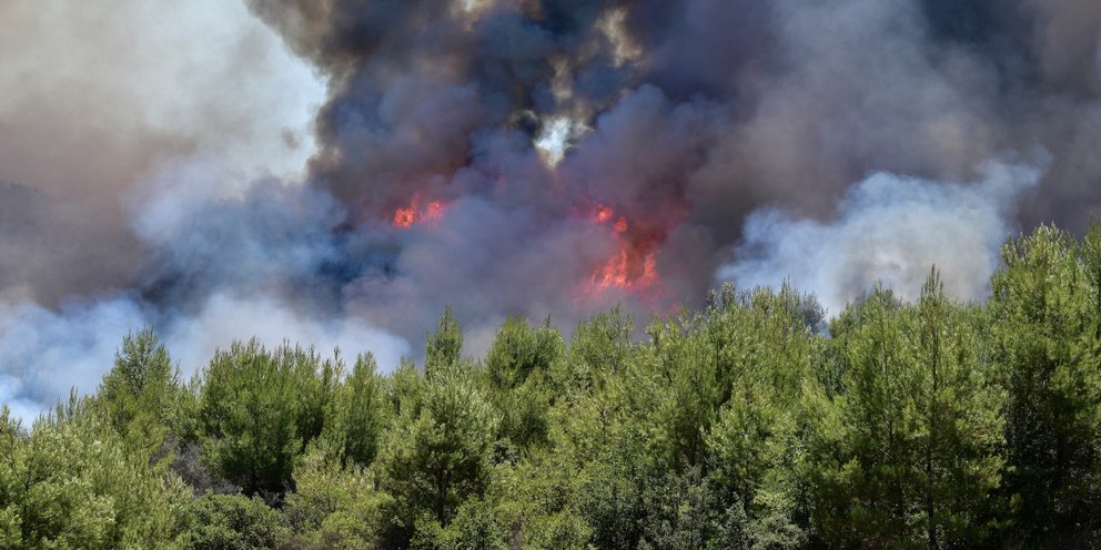 Δέντρα παραδίδονται στις φλόγες και οι καπνοί είναι έντονοι σε διάφορα μέρη του δάσους.