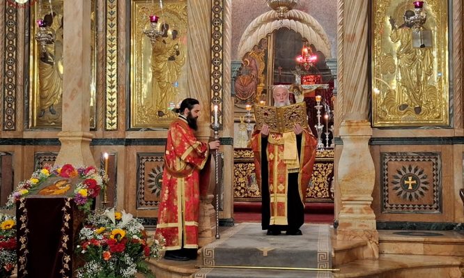 Τό ἑσπέρας τῆς Παρασκευῆς, 14ης/27ης Φεβρουαρίου 2026, εἰς τό Καθολικόν τοῦ Ναοῦ τῆς Ἀναστάσεως, ἀνεγνώσθη ἡ Α’ Στάσις τῶν Χαιρετισμῶν τοῦ Ἀκαθίστου Ὕμνου εἰς τό πλαίσιον τῆς Ἀκολουθίας τοῦ Μικροῦ Ἀποδείπνου καί τοῦ Κανόνος «Ἀνοίξω τό Στόμα μου», προεξαρχούσης τῆς Α.Θ.Μ. τοῦ Πατρός ἡμῶν καί Πατριάρχου Ἱεροσολύμων κ.κ. Θεοφίλου, συμπροσευχομένων Ἁγιοταφιτῶν Πατέρων, τοῦ Γέροντος Καμαράση Ἀρχιμανδρίτου […]