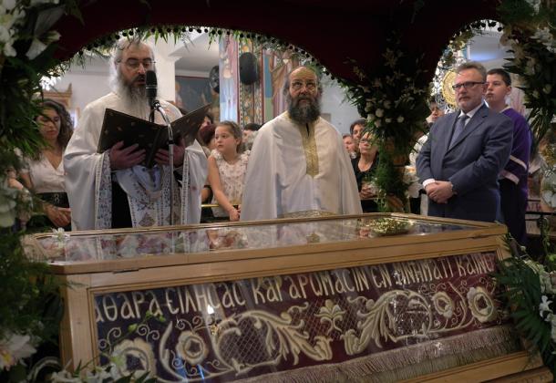 Στις ιερές ακολουθίες που τέλεσαν ο προϊστάμενος του Ναού π. Βενέδικτος Παπαχρήστος και ο π. Ευθύμιος Αναγνωστόπουλος συμμετείχαν πλήθος πιστών.