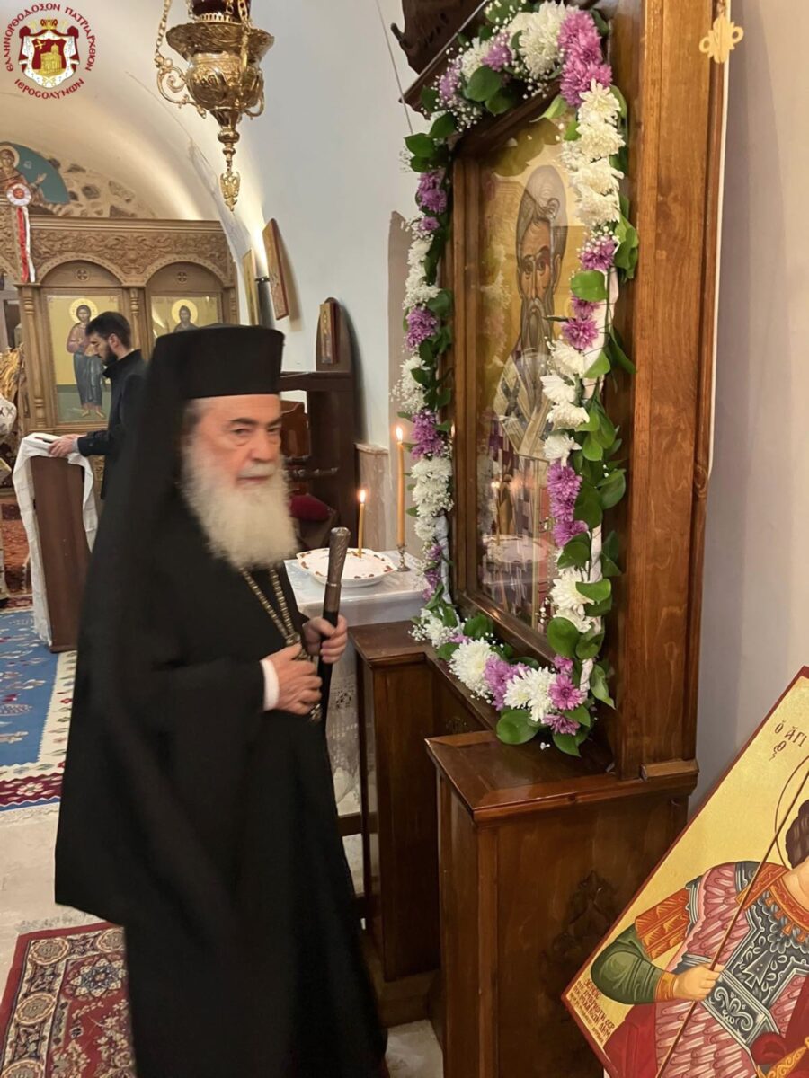 Διαρκούσης τῆς θείας Λειτουργίας προσῆλθε διά προσκύνησιν ἡ Α.Θ.Μ. ὁ Πατήρ ἡμῶν καί Πατριάρχης Ἱεροσολύμων κ.κ. Θεόφιλος μετά τοῦ Γέροντος Ἀρχιγραμματέως Σεβασμιωτάτου Ἀρχιεπισκόπου Κωνσταντίνης κ. Ἀριστάρχου καί τοῦ Τελετάρχου τῶν Πατριαρχείων Ἀρχιμανδρίτου π. Βαρθολομαίου.